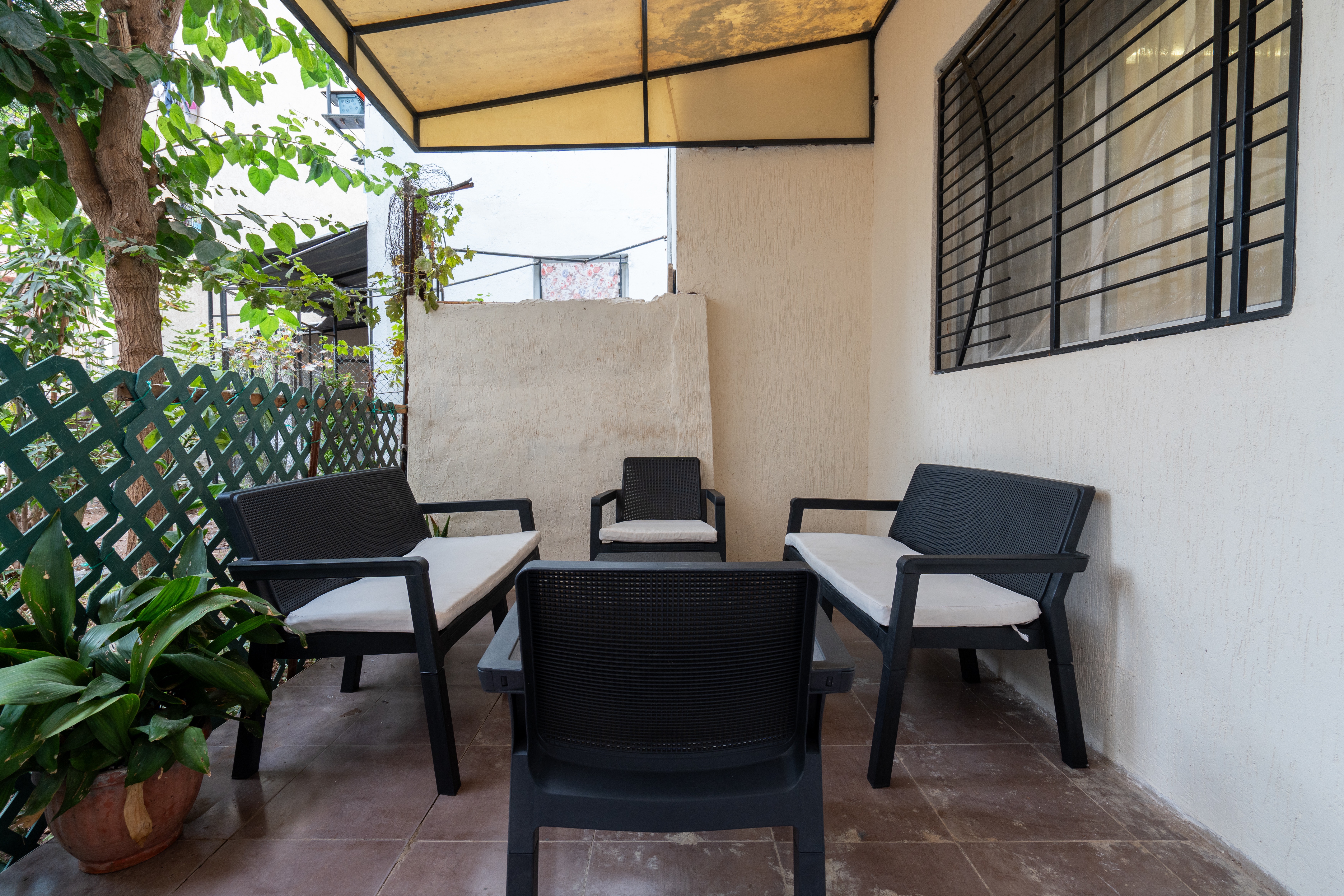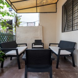 → Terrasse extérieure meublée, avec vue sur jardin, parfaite pour des moments de détente uniques.