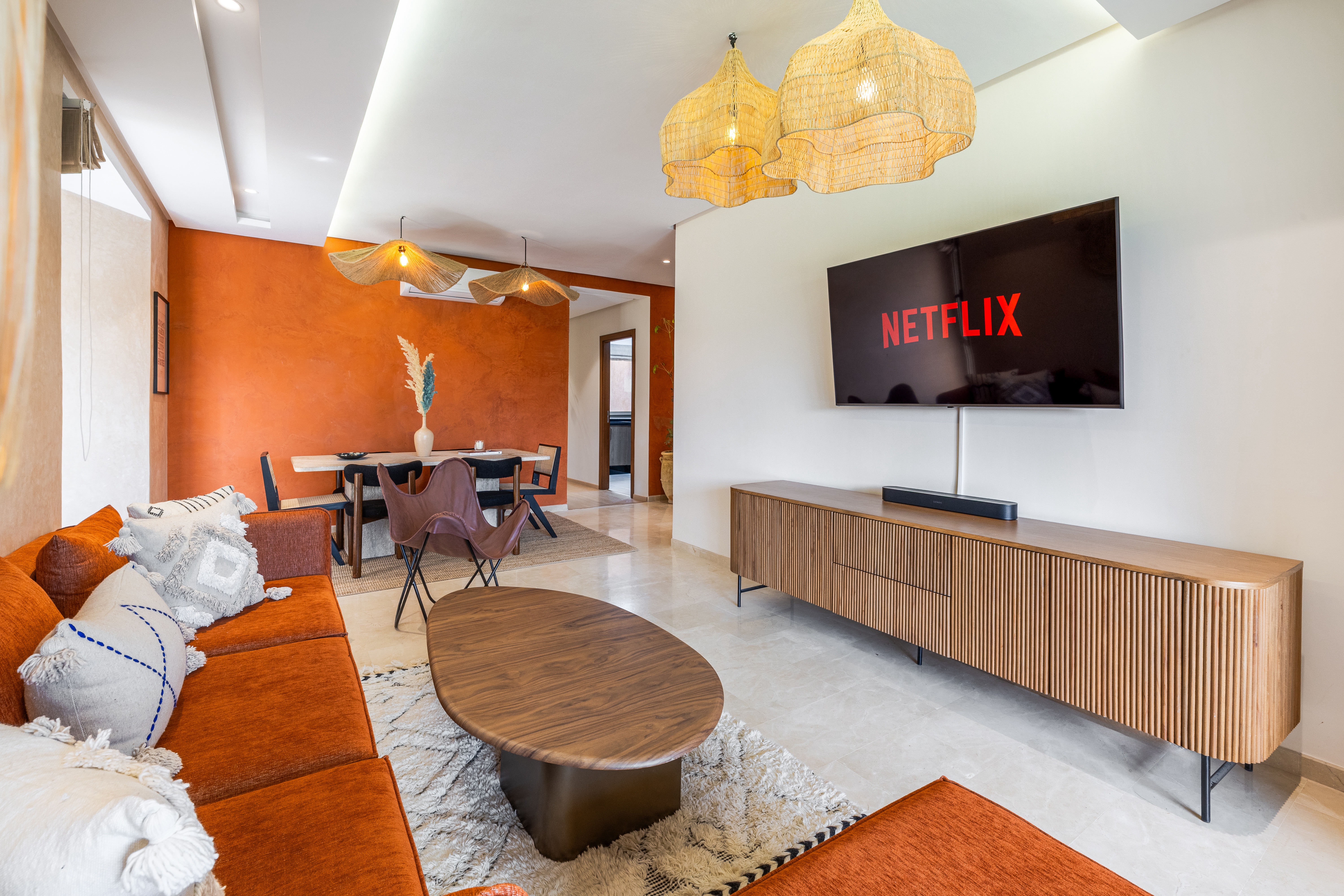 → Télévision connectée avec Netflix, Playstation et système sono pour des soirées divertissantes.