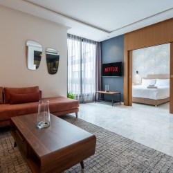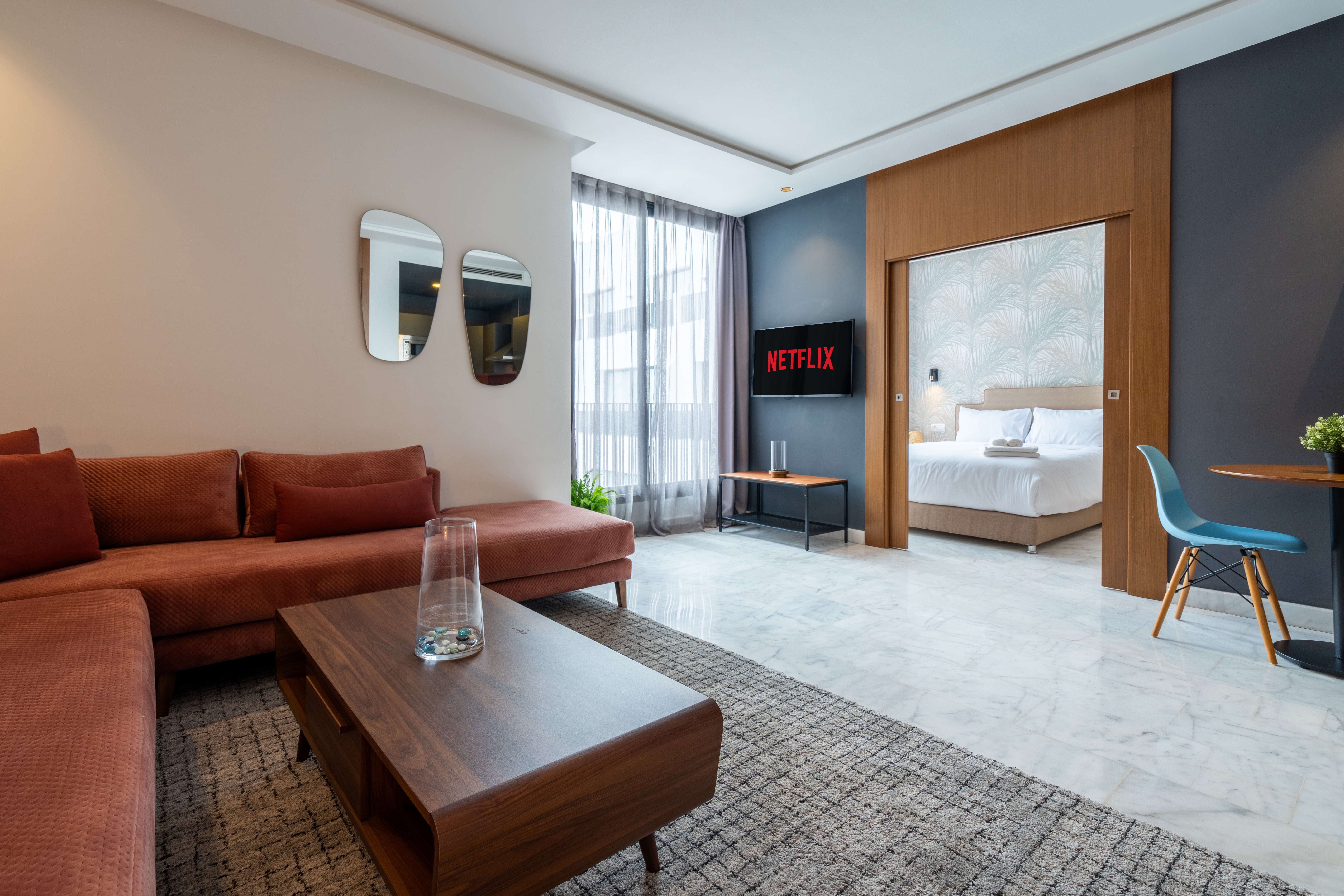 Dans un immeuble de haut standing avec service de gardiennage, cet espace allie confort et sécurité pour un séjour inoubliable et reposant.