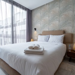 → Studio élégant avec une chambre équipée d’un lit double, idéal pour une ambiance intime et confortable.